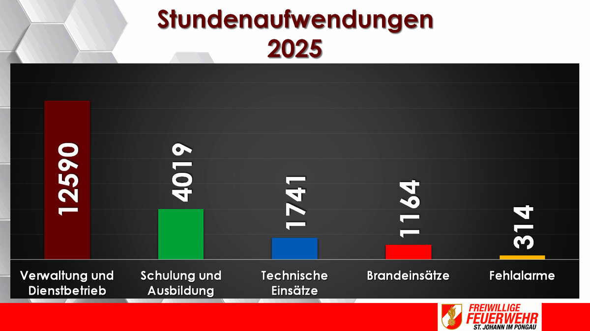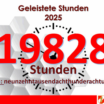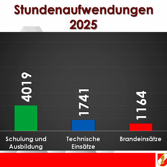 16609 Stunden wurde im Jahr 2025 für Ausbildungen und Übungen sowie Verwaltungstätigkeiten aufgewendet, um auch in der Zukunft für den Ernstfall gerüstet und für die Bevölkerung 24 Stunden am Tag einsatzbereit zu sein.