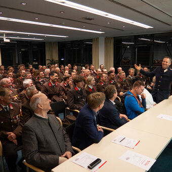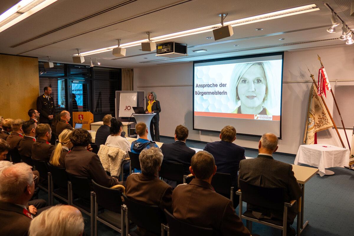 Nach einem Totengedenken für die im vergangenen Jahr verstorbenen Kameraden wurde vom Kommandanten und den verantwortlichen Sachbearbeiten der beeindruckende Tätigkeitsbericht für das Jahr 2025 präsentiert.