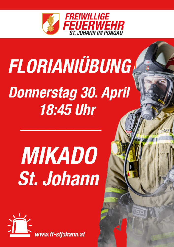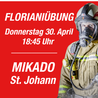 Am Donnerstag, den 30. April 2026, führt die Feuerwehr St. Johann im Pongau eine Floriani-Schauübung im Mikado durch.