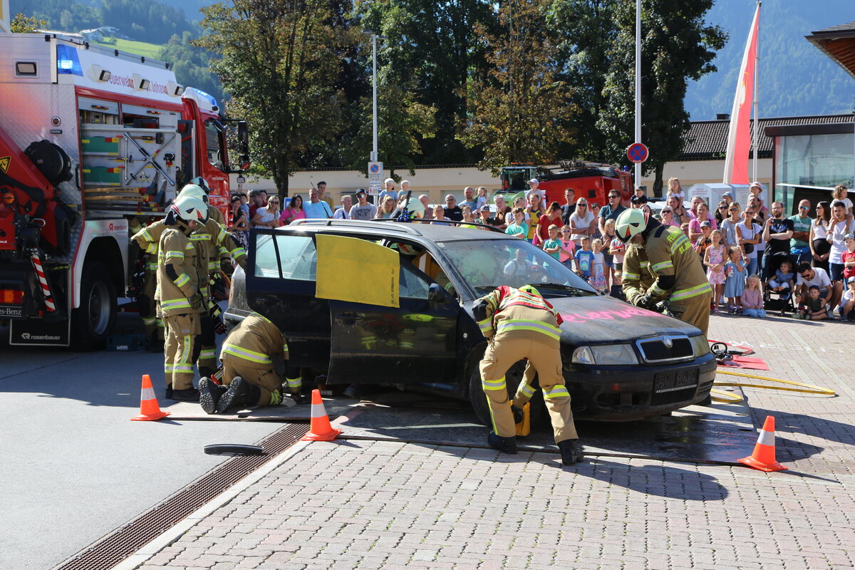 Die Gäste konnten an Führungen durch das Feuerwehrhaus teilnehmen und erhielten dabei interessante Informationen über unsere tägliche Arbeit. Unsere Fahrzeuge standen zur Besichtigung bereit, und besonders bei den jüngsten Besuchern sorgte das aktive Kinderprogramm mit Hüpfburg für strahlende Gesichter. Unter dem Motto "Zeig dein Können" konnten die Besucher ihre Geschicklichkeit im Umgang mit der Bergeschere und den Handfeuerlöschern testen.