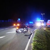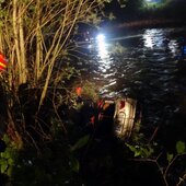 Um 23:24 Uhr wurde die Feuerwehr über Sirenenalarm zu einem Verkehrsunfall zur Einfahrt "Süd" alarmiert. Nach einem Zusammenstoß im Kreuzungsbereich war ein Pkw in die Salzach gestürzt. Der Unfalllenker konnte sich verletzt selbstständig aus dem Fahrzeug befreien und das Ufer erreichen, bevor der Pkw im reißenden Fluss abgetrieben wurde. Die beim Unfall verletzten Personen wurden beim Eintreffen der Feuerwehr bereits durch das Rote Kreuz versorgt. Nach einer Erkundung wurde die Unfallstelle ausgeleuchtet und gemeinsam mit der Wasserrettung eine Suchaktion nach dem Pkw gestartet. Weiters musste die Fahrbahn von ausgeflossenen Betriebsmitteln gereinigt, sowie ein Abschleppunternehmen nach der Unfallaufnahme durch die Polizei unterstützt werden. Mit Unterstützung des Kraftwerkbetreibers wurde der Wasserspiegel im Staubereich abgesenkt. Dadurch konnte das Fahrzeug ca. 200 Meter flussabwärts von Kräften der Wasserrettung durch den Einsatz eines Sonargerätes ausfindig gemacht, und in einer gemeinsamen aufwendigen Bergeaktion bei starker Strömung aus dem Fluss geborgen werden. Durch die gute Zusammenarbeit aller Einsatzorganisationen wurde der Einsatz in relativ kurzer Zeit abgeschlossen und dadurch ein Umweltschaden sowie eine langwierige personalintensive Suchaktion verhindert.