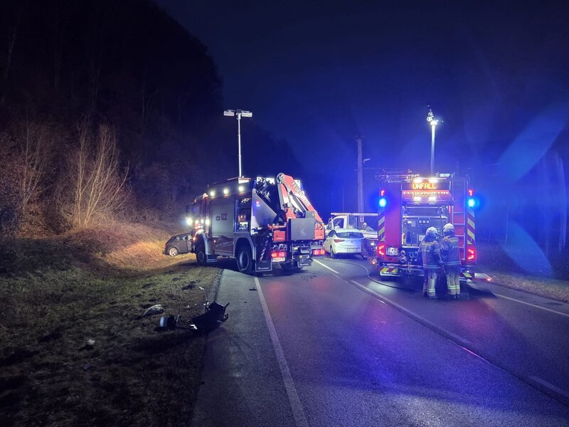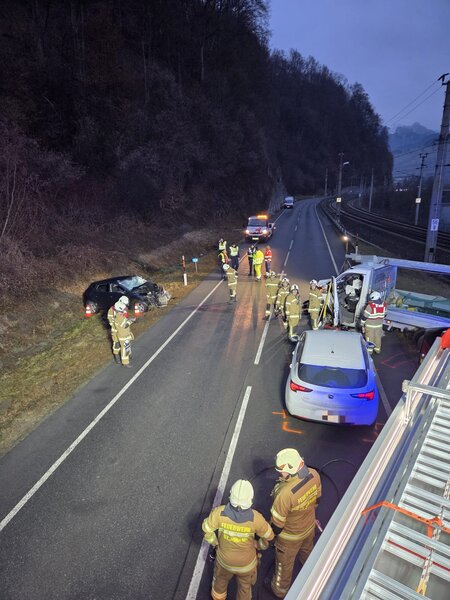 Um 06:36 Uhr wurde die Feuerwehr über Sirenenalarm zu einem schweren Verkehrsunfall auf die L269 alarmiert. Nach einer Kollision mit drei beteiligten Fahrzeugen wurde ein Unfallfahrzeug von der Fahrbahn in eine angrenzende Wiese geschleudert. Eine Person wurde dabei im Beinbereich massiv in ihrem Pkw eingeklemmt. In Zusammenarbeit mit dem Notarzt- und Rettungsteam musste die schwer verletzte Person in einer aufwendigen Rettungsaktion mittels hydraulischem Rettungsgerät aus dem schwer beschädigten Fahrzeug befreit und an das Rote Kreuz zur Weiterversorgung übergeben werden. Weitere Einsatzmaßnahmen waren die Absicherung und Ausleuchtung der Unfallstelle, der Aufbau eines Brandschutzes, das Binden von ausgeflossenen Betriebsmitteln, die Reinigung der Unfallstelle sowie die Unterstützung von drei Abschleppunternehmen beim Abtransport der Unfallfahrzeuge. Die Bischofshofener Landesstraße war während der Aufräumarbeiten und der Unfallaufnahme durch die Polizei in beiden Fahrtrichtungen gesperrt.